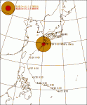 当日の気象庁発表による「台風予想進路図」はこんな感じです!