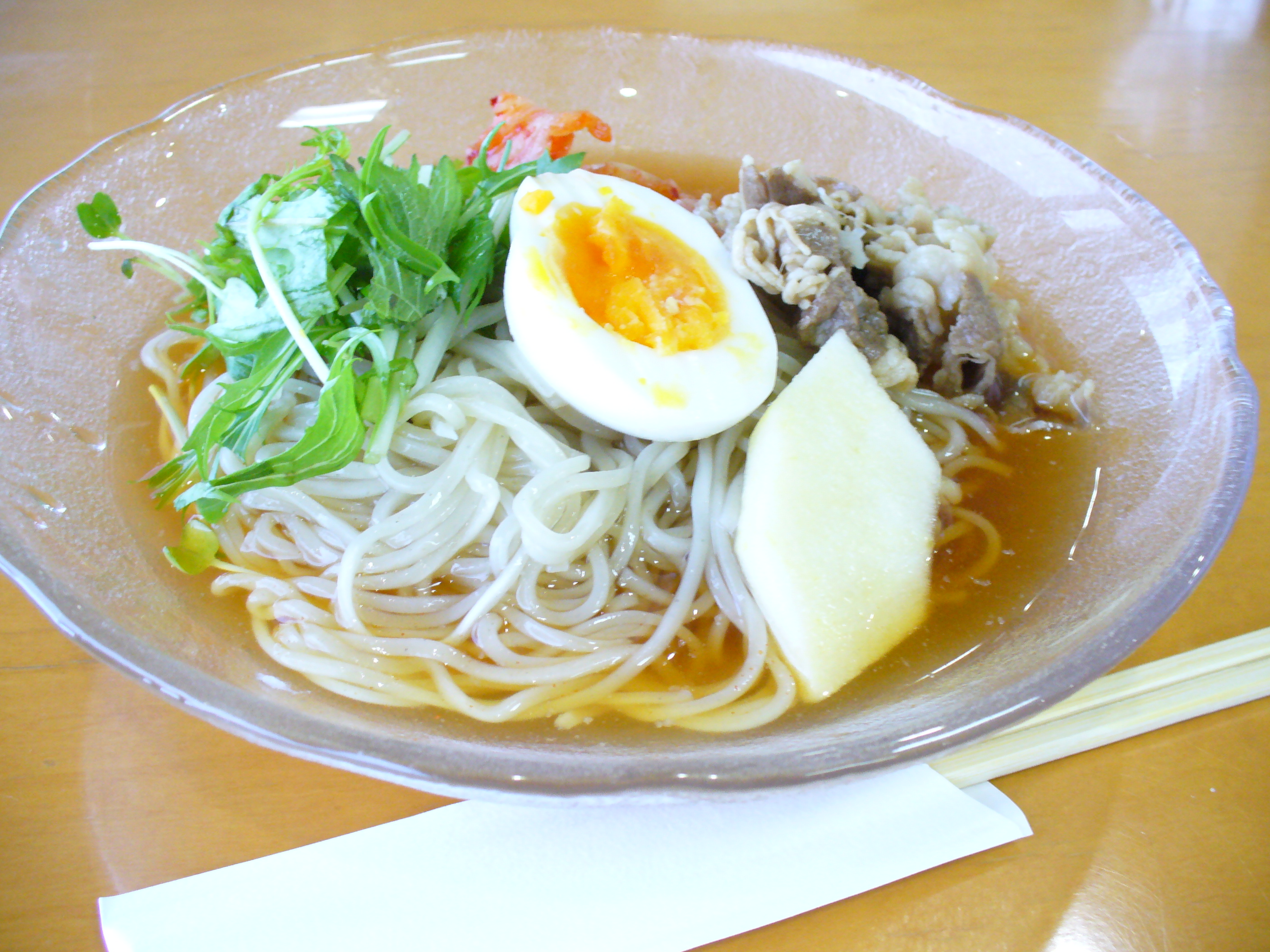 レストラン情報 Author ブログ担当 Date 2011年8月2日 こんにちは! 8月に入り夏本番!!と 言いたいところですが、不安定な天候が続いているので 健康管理には十分に気を付けたいものです。 こんな時こそ、ジメジメした気分を吹き飛ばす ピリッと辛い 坦々麺が人気です!暑い時こそ熱い物を!! 辛さ控えめの 韓国冷麵 も大人気です。 是非 ご賞味下さい。 坦々麺 ¥900 韓国冷麵 ¥1000